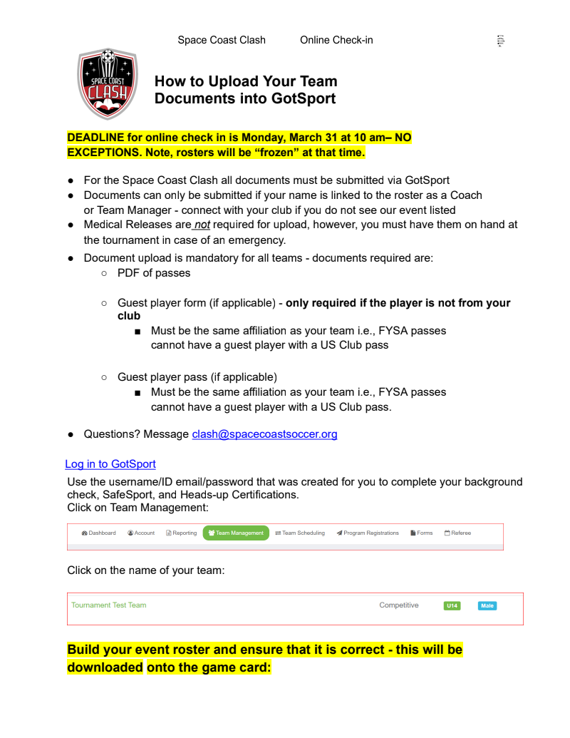 Online Check-In Deadline/Final Rosters: 10am March 31, 2026